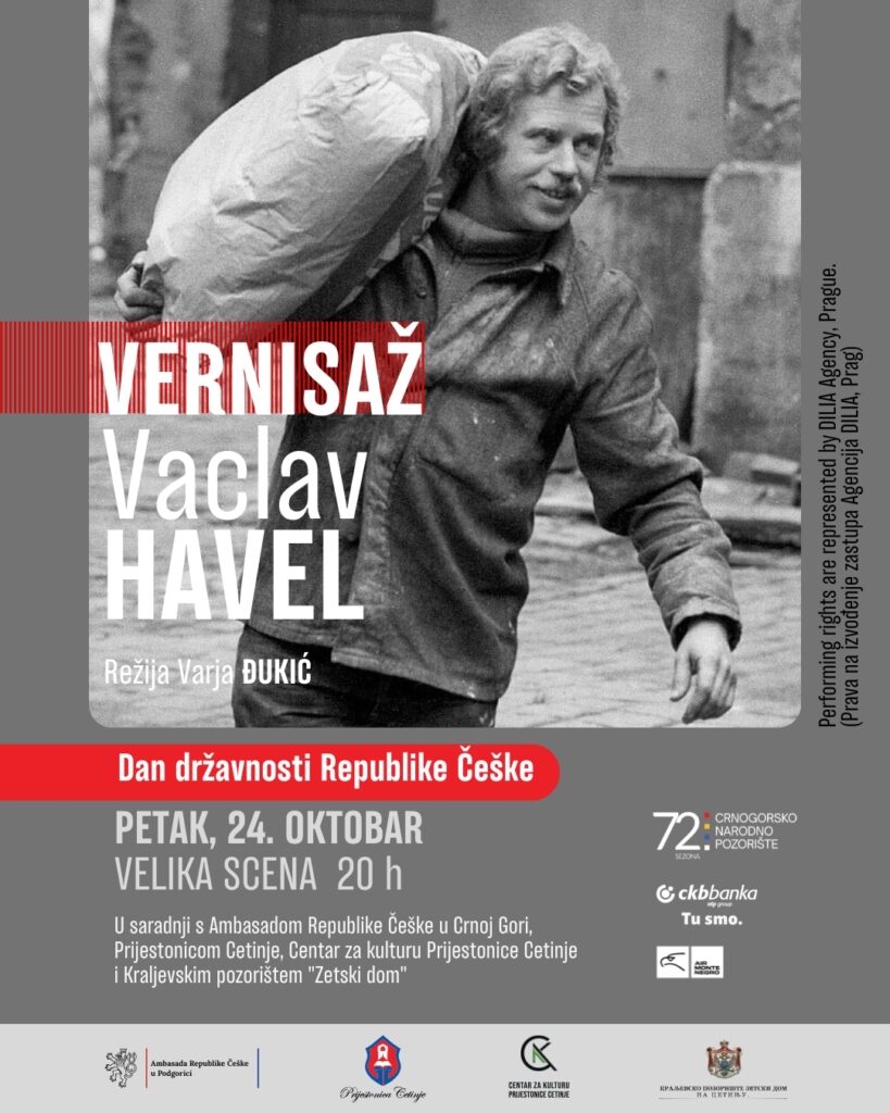 Predstava „Vernisaž“, prema tekstu Vaclava Havela, u režiji Varje Đukić, biće izvedena u petak, 24. oktobra na Velikoj sceni Crnogorskog narodnog pozorišta u 20h, u okviru […]